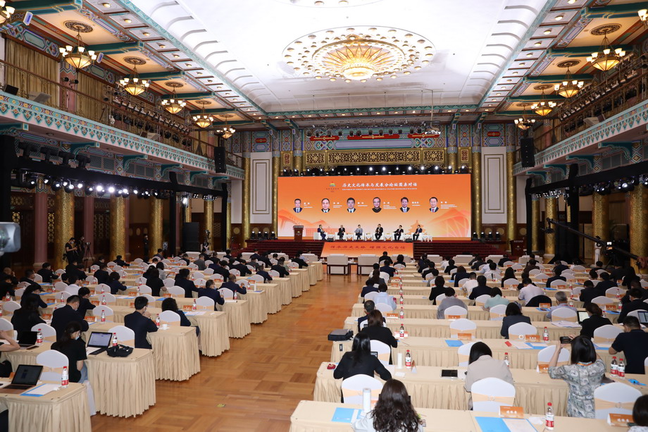 7月26日上午,北京文化论坛“历史文化传承与发展”分论坛在北京举行。分论坛以“传承历史文脉 增强文化自信”为主题,从弘扬中华优秀传统文化、红色基因传承赓续、博物馆之城建设、文物活化利用等不同角度进行深入交流研讨。图为分论坛现场。(歌华传媒集团供图)