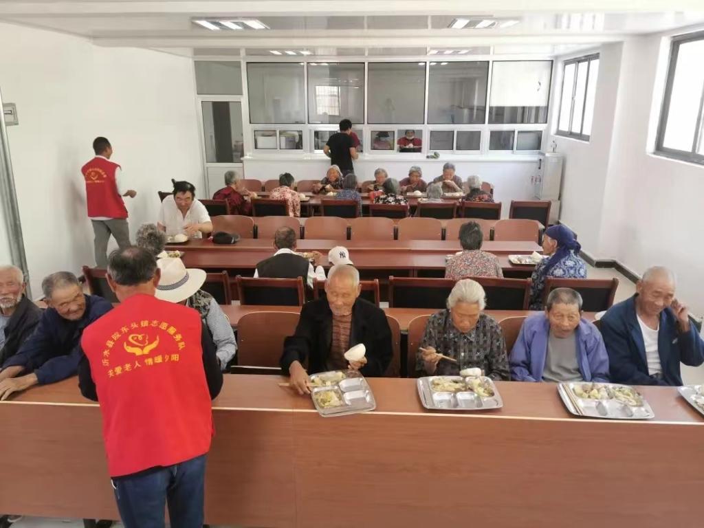 山东省沂水县的志愿服务队队员在“暖心食堂”为老年人提供志愿服务。受访者供图