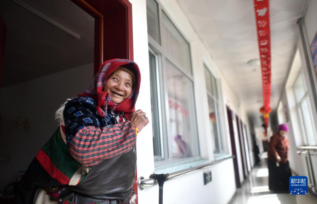 在青海省玉树藏族自治州治多县,提沙索忠老人在幸福敬老院内(2021年3月14日摄)。新华社记者 张宏祥 摄