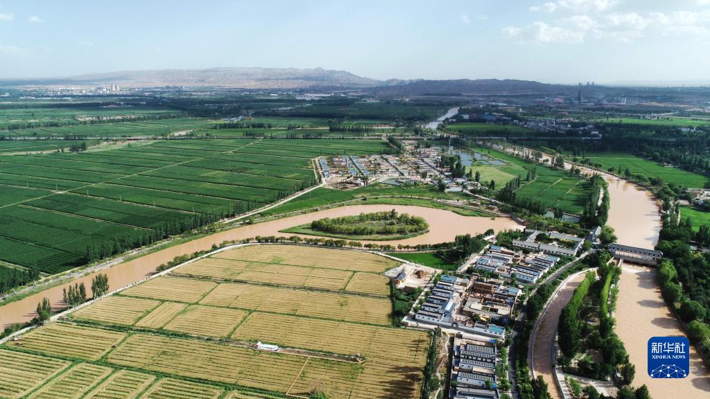 位于黄河分水口的宁夏青铜峡市大坝镇韦桥村(2022年7月5日摄,无人机照片)。新华社记者 王鹏 摄