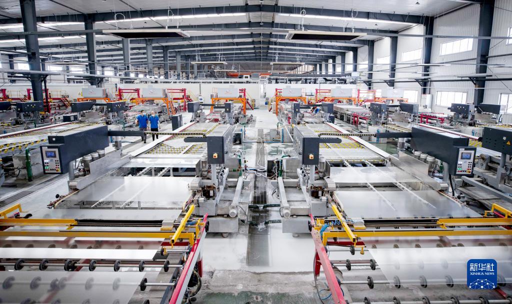 这是位于宁夏石嘴山市的宁夏金晶科技有限公司的光伏玻璃深加工生产线(2022年6月1日摄)。新华社记者 杨植森 摄
