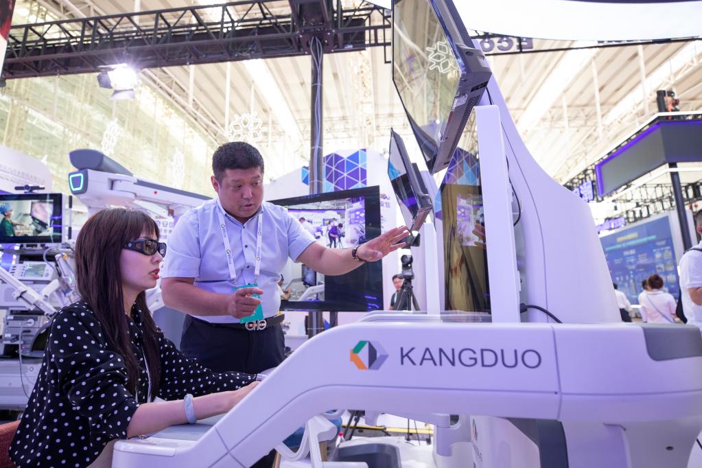 2022世界5G大会展厅里,参展商现场演示5G远程手术机器人。新华社记者 张涛 摄