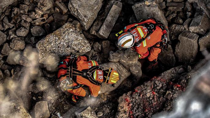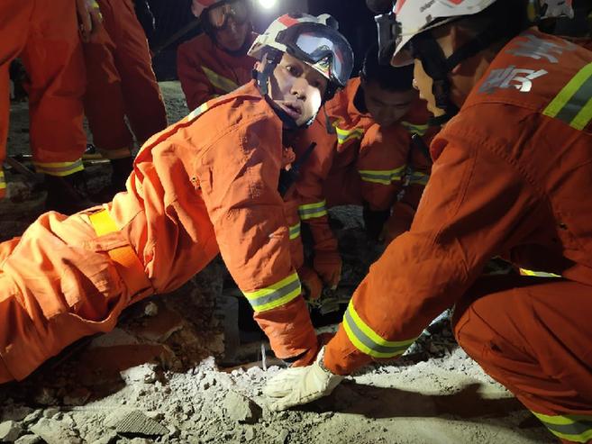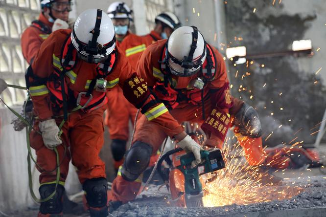 贵州省消防救援总队开展地震救援拉动演练。供图:贵州消防 (资料图片)