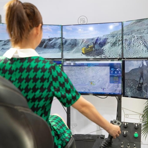 2022世界5G大会展厅内,参观者体验5G网络支持下的远程挖矿设备。新华社记者 张涛 摄