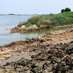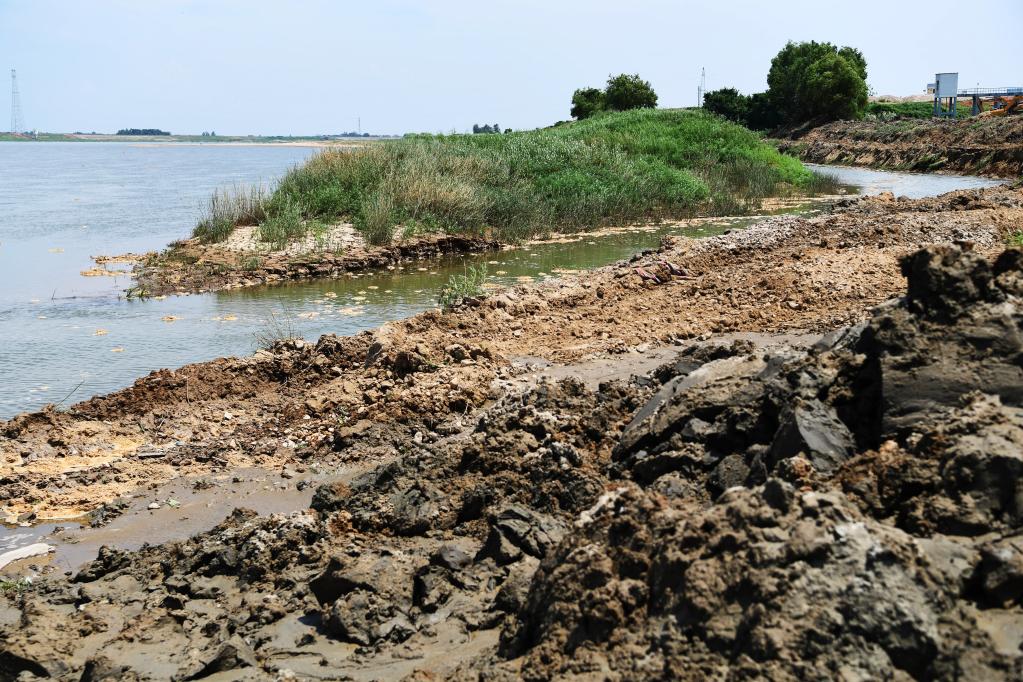 紧邻修河的三角乡是永修县的产粮大乡,不少地方灌溉用水需经二次提灌才能进入田间。由于修河水位下降,乡里两个大型一级提灌站中的彭家闸提灌站,取水口离水面有三四十米远。