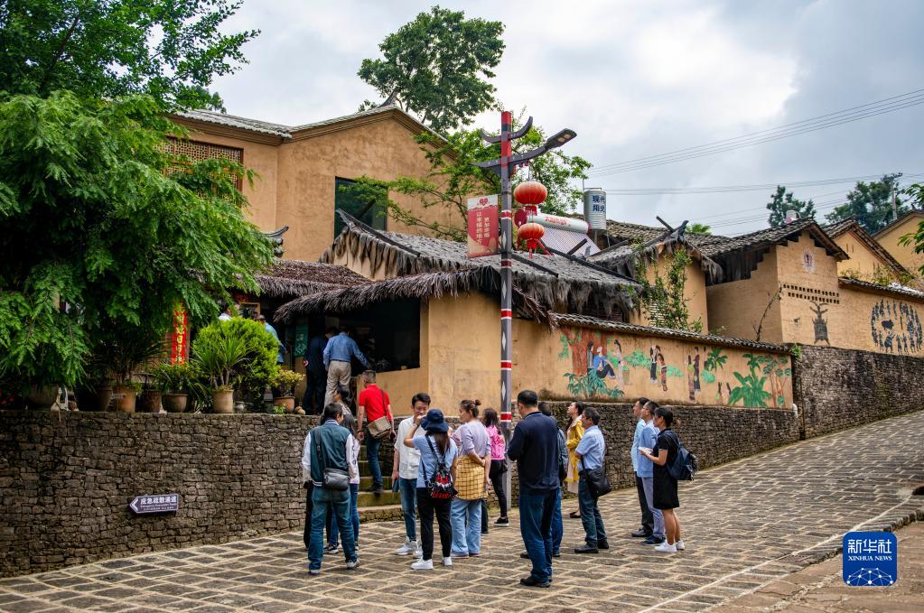 游客在腾冲市清水乡三家村中寨司莫拉佤族村参观(2022年5月28日摄)。新华社记者 陈欣波 摄