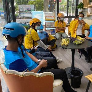 “骑手家园”内外卖小哥开展“夏日送清凉茶话会”活动。(受访单位供图)
