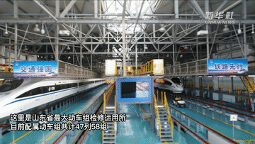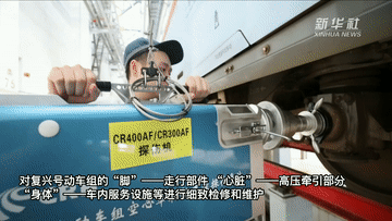 为保障铁路运输安全高效,这里的“动车医生”们正对复兴号动车组的“脚”——走行部件、“心脏”——高压牵引部分、“身体”——车内服务设施等进行细致检修和维护,确保暑运期间列车运行安全。