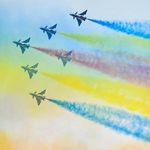首先进行飞行表演的是空军航空大学“红鹰”飞行表演队。在为期5天航空开放活动中,“红鹰”飞行表演队将呈现20套表演动作,其中一箭穿心、八机斤斗,是他们的招牌动作。“八一”飞行表演队6架歼-10飞机呈现了单机大仰角跃升,六机编队斤斗、六机同步横滚等动作,不仅精彩震撼,同时也具备很高的实战价值。