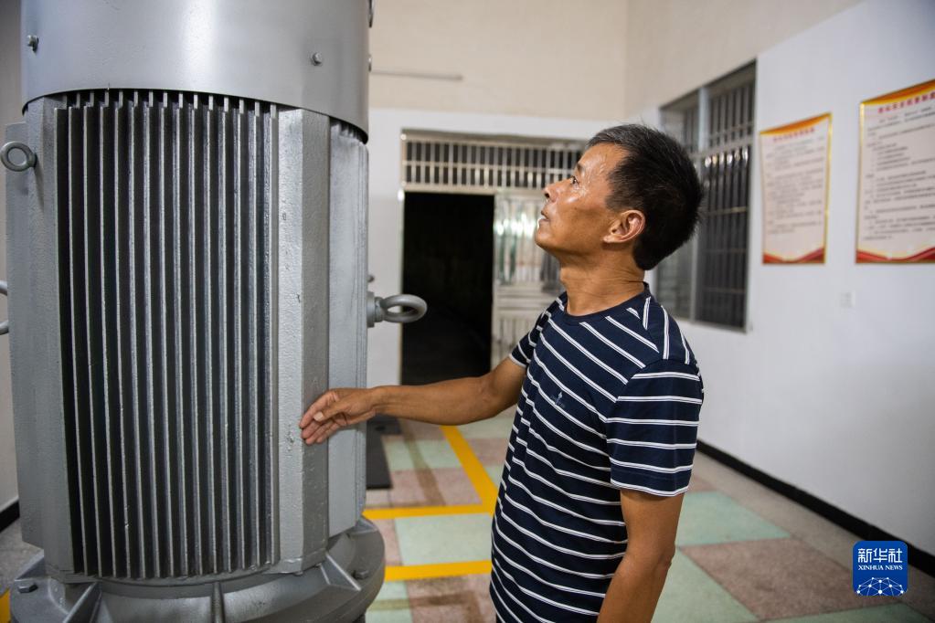 8月24日,湖南省常德市安乡县三岔河镇水利管理站值班人员在检查泵站电机运行情况。