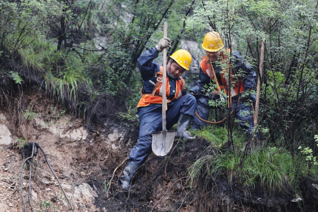 中国铁路太原局集团有限公司太原工务段职工正在清理排洪沟。(中国铁路太原局集团有限公司供图)