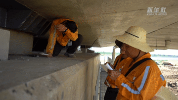 整整一上午,预介入组的组员们仔细检查桥梁支座、梁缝、止水带、砂浆层、垫石状态、防落梁设施等重要点位,汗水湿透工装。