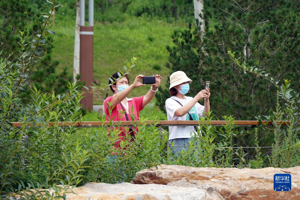 2022年7月19日,居民在河北邯郸武安市九龙山矿山生态修复公园拍照游玩。新华社记者 骆学峰 摄