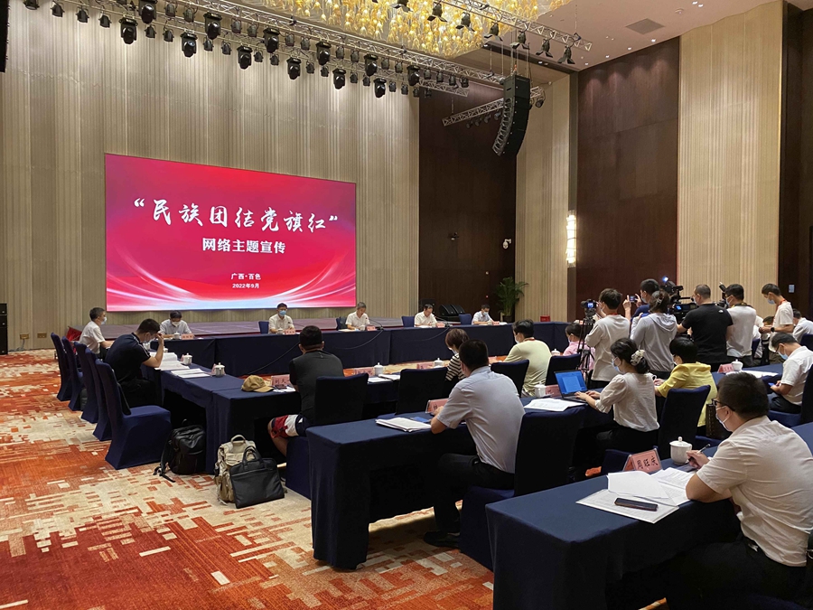9月2日,“民族团结党旗红”网络主题宣传在广西壮族自治区百色市启动。(光明网供图)