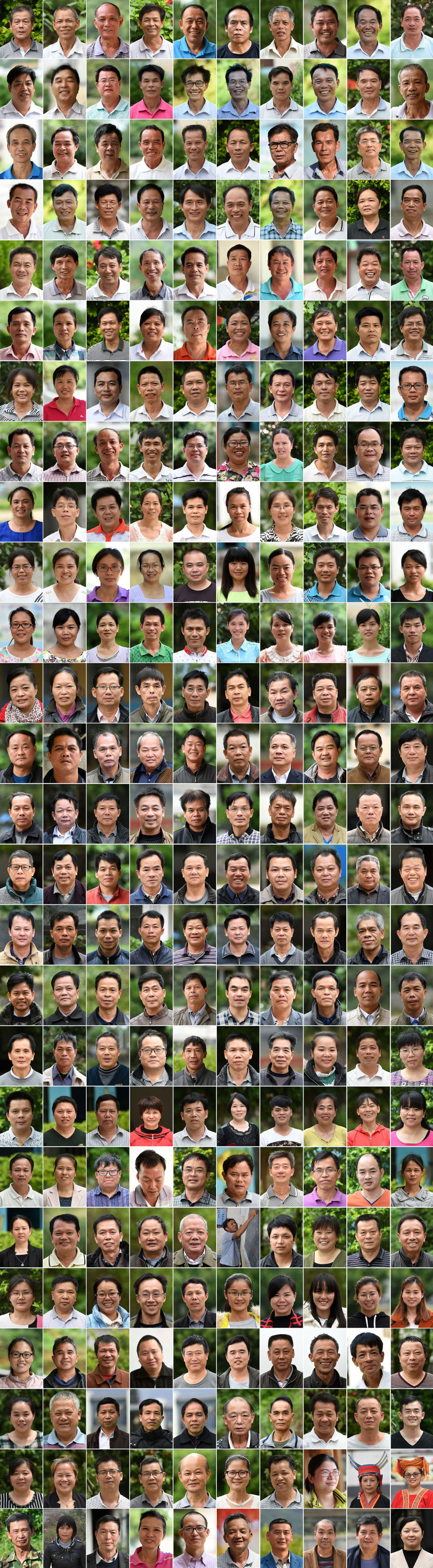 这张拼版照片是2012年至2022年拍摄的260名山区教师的肖像,他们是广西天等县、大新县、全州县、灌阳县、灵川县、昭平县、上思县、都安瑶族自治县、大化瑶族自治县、龙胜各族自治县、三江侗族自治县、融水苗族自治县、富川瑶族自治县、金秀瑶族自治县部分山区老师,绝大部分是教学点老师。