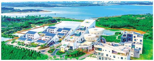 走进共青科教城,南昌航空大学科技学院、江西财经大学现代经济管理学院、江西师范大学科学技术学院等5所高校、3所职校沿鄱阳湖畔错落分布。