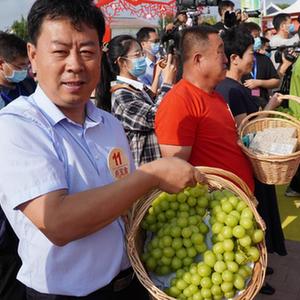 9月14日,在山东省乐陵市举行的全国农民技能大赛(种植能手)现场,选手在展示自己家乡的农产品。新华社记者 徐速绘 摄