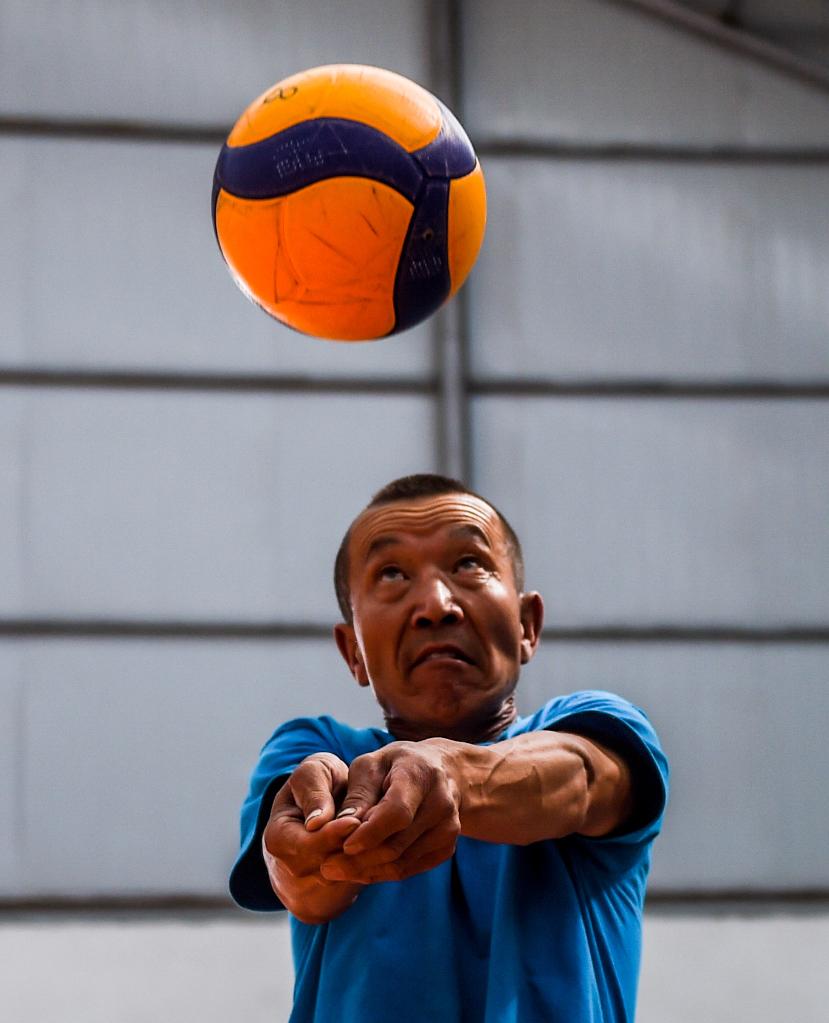 呼格吉拉图生活在这个热爱排球运动的小镇——内蒙古鄂尔多斯市鄂托克前旗昂素镇。作为一名地道的牧民,他每天要照料4800多亩草场上的牛羊,从日出忙到日落。但不管白天多忙,晚上的时间都要留给排球:“白天属于牧场,晚上交给球场。”排球给了他好身体,56岁的人,能一连做七八个引体向上。