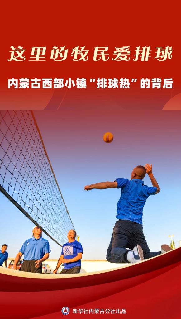 新华社呼和浩特9月20日电(记者魏婧宇 王春燕 勿日汗)可能很难想象,内蒙古自治区西部一个常住人口不足8000人的小镇上,会有超过3500人热爱打排球;镇上几乎每个嘎查(村)、社区都有排球场地;牧民们为了约一场球,驱车几十公里甚至上百公里是常事……