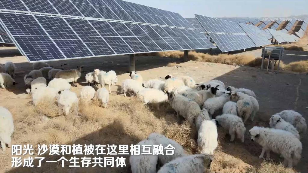 光伏板下孕育着越来越多的生机,一场治理沙利用沙的蓝海正在这里开启。