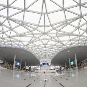 候车大厅内,天花板具有良好的采光,同时室温也让人感到舒适。“这得益于车站屋顶采用了约5.6万平方米的辐射制冷膜。”林航说,“这种新型材料能够反射部分太阳光,既不影响采光,又能阻挡来自阳光的热量,从而达到减少室内制冷能耗的效果。”