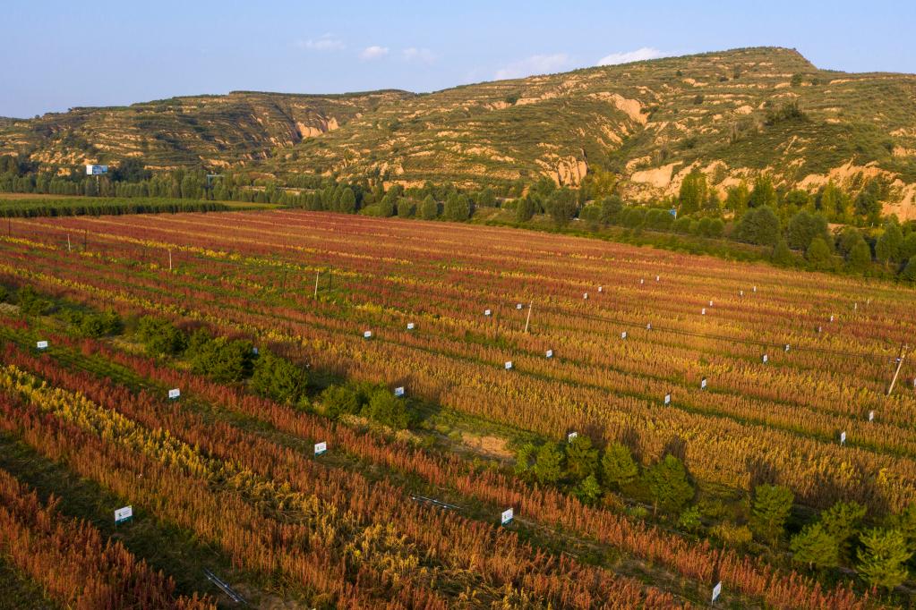 这是位于静乐县神峪沟乡东大树村的一处藜麦种植基地(9月15日摄,无人机照片,新华社记者杨晨光 摄)