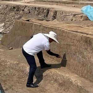 图为考古工作者发掘的一段城墙解剖面。新华社记者朱国亮摄