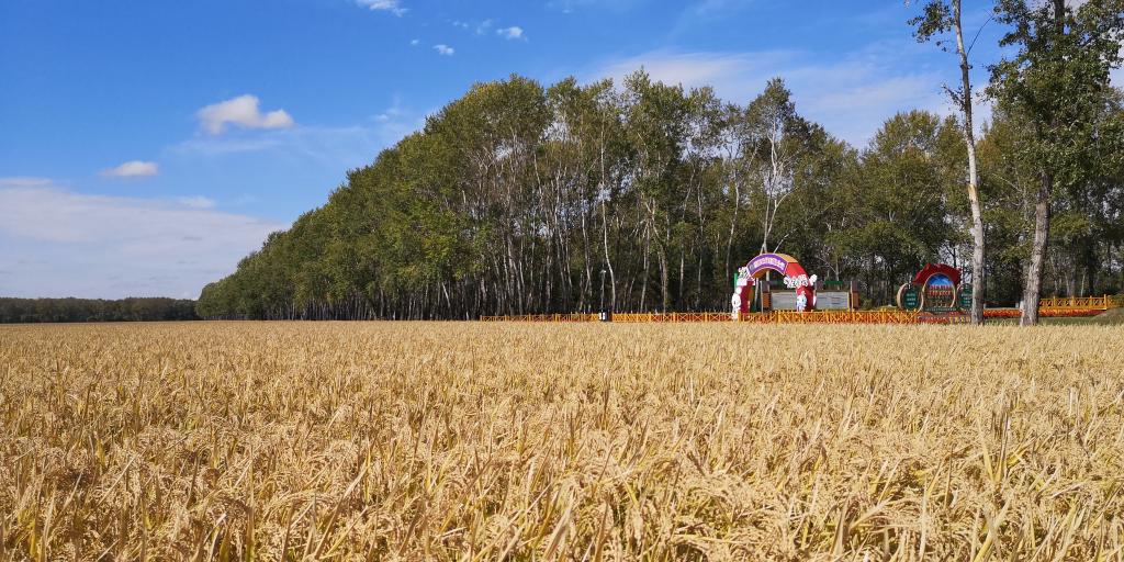 金秋九月,天高气爽,一片金黄。在位于黑龙江省的北大荒集团普阳农场有限公司,一片高产示范田正准备收割。地头上聚集了不少来观看的种植户,数辆水稻收割机“蓄势待发”,空气中弥漫着浓浓的稻香。