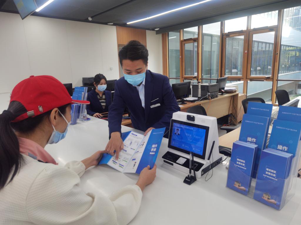 雄安新区不动产登记中心工作人员为群众解答线上操作申请流程。新华社记者 张玮华 摄