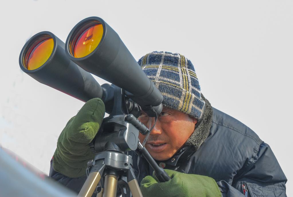 每年10月到次年3、4月,是水鸟取食困难的时候。任建国每天凌晨3点半起床,把备好的鸟粮扛到各浅滩投食点,忙个不停。这样的日子过了一年又一年,“候鸟季”飞到长白岛的水鸟种类和数量变得越来越多。