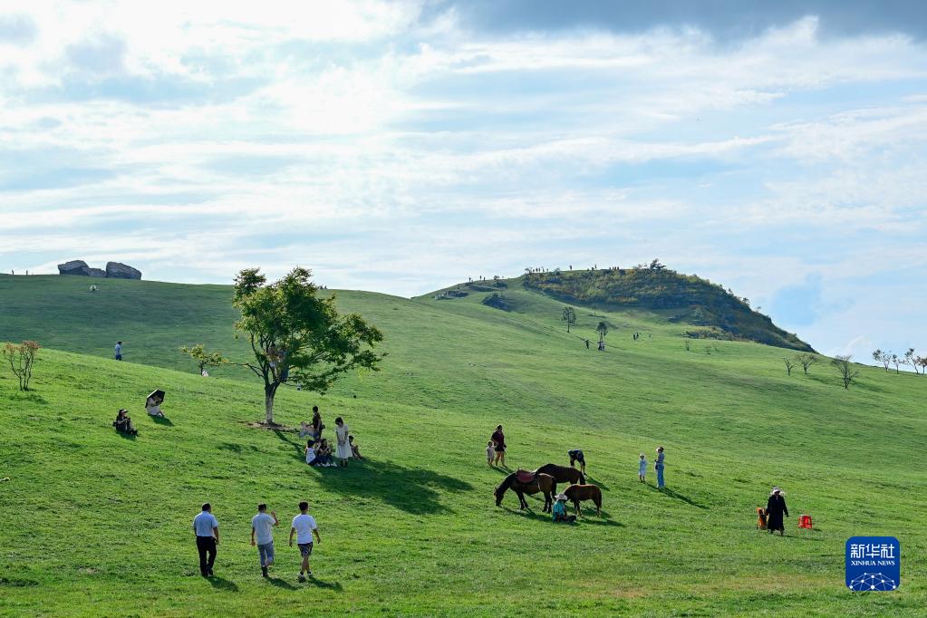游人在重庆市酉阳土家族苗族自治县菖蒲高山生态旅游度假区游玩(2022年7月24日摄)。新华社发(邱洪斌 摄)