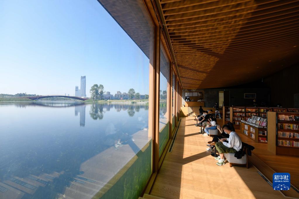 读者在成都兴隆湖畔的中信书店内读书(2022年4月20日摄)。新华社记者 胥冰洁 摄