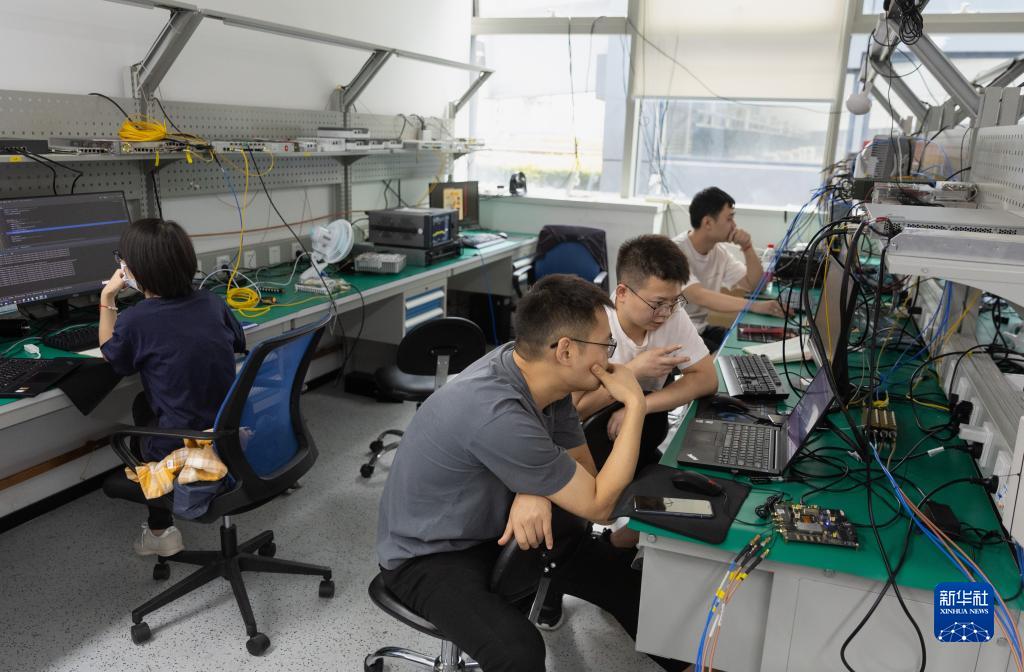 在成都中科微信息技术研究院有限公司,通信及芯片团队在讨论研究工作(2022年9月21日摄)。新华社记者 江宏景 摄