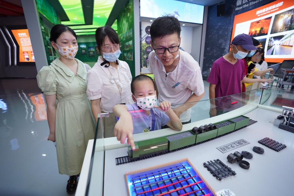 10月3日,游客们在方大特钢工业旅游景区内参观炼钢流程模型。新华社记者 周密 摄