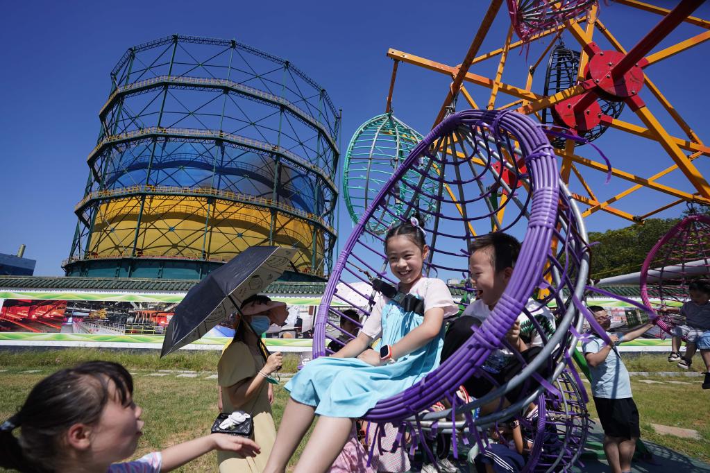 10月3日,游客们在方大特钢工业旅游景区内游览。 新华社记者 周密 摄