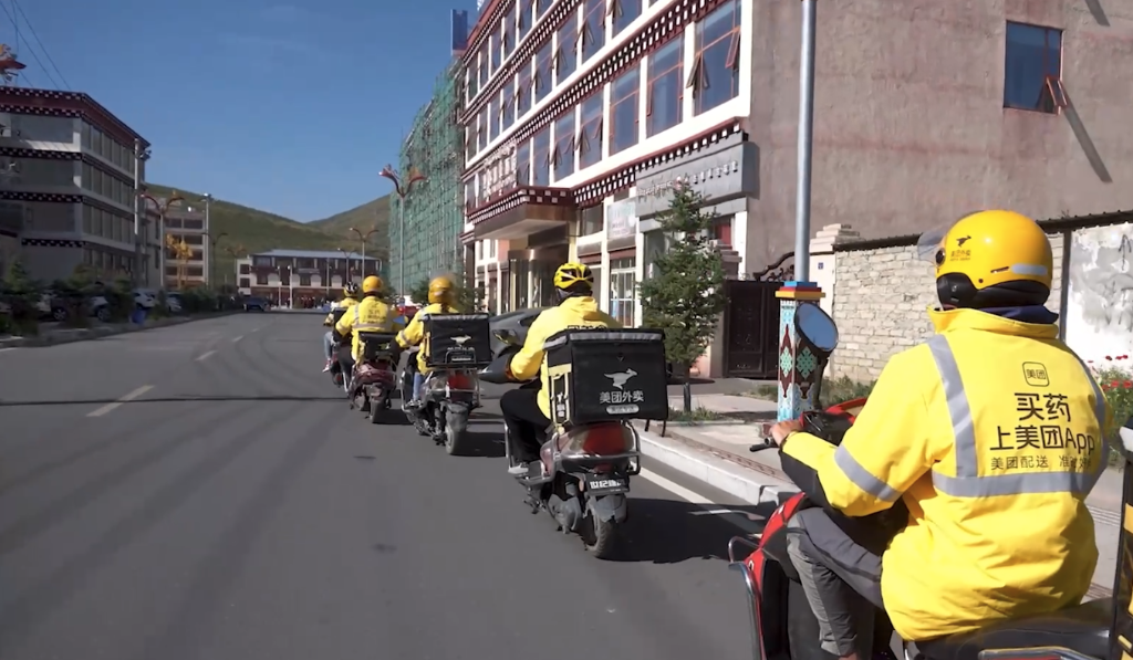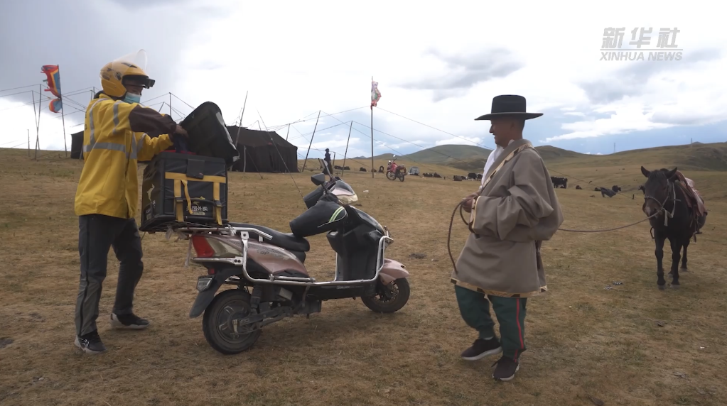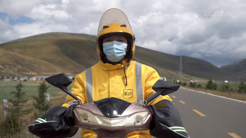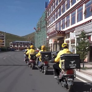 在四川省甘孜藏族自治州色达县,国庆假期期间外卖骑手格外忙碌。7名外卖骑手担负着整个色达县城及周边的配送任务。在县城“三纵六横”的大马路上,在街角巷子口,甚至城外的金马草原上,时常能看到他们穿梭的身影。