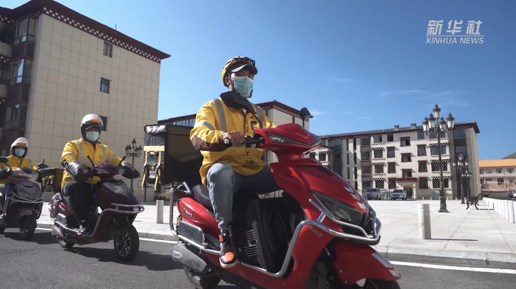 越来越多的藏族年轻人转变观念,或外出打工,或留在县城找份工作,通过自身努力来让生活变得更好。同时,外卖骑手们也在每天“穿梭”配送中见证着这座高原小城的蝶变。