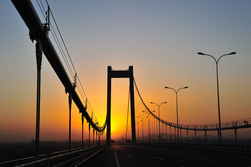 桥面之上,马达和步履的洪流