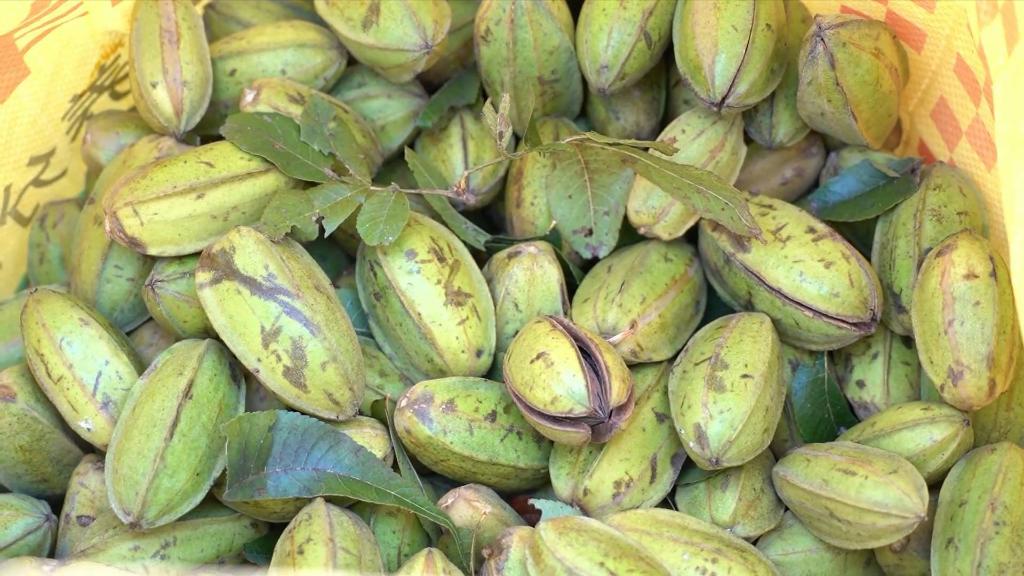 近日,在湖南省怀化市芷江侗族自治县罗旧镇曹家坪村,100多亩碧根果迎来丰收。