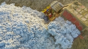 10月18日,在辽宁沈阳市沈北新区兴隆台镇青年农场,农民把机械化收割下来的水稻装车(无人机照片)。 新华社记者 杨青 摄
