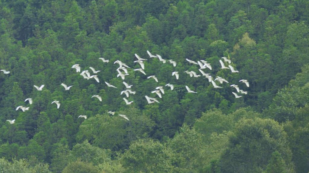 它们时而追逐嬉戏,时而如雪片般落在树梢,不停地展示曼妙的身姿,呈现出一幅自然和谐的生态画卷。