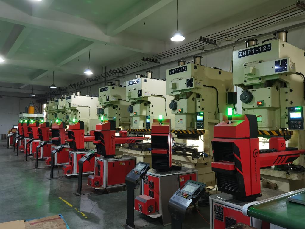 2022年10月19日,在慈溪市玉龙电器有限公司冲压车间内,机械设备正在生产取暖器前板。新华社记者 顾小立 摄