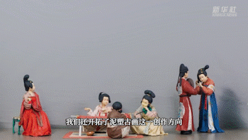 他们还开拓了泥塑古画这一创作方向,把《捣练图》《挥扇仕女图》《虢国夫人游春图》等十余幅传世名画中的人物,用泥塑的形式进行立体化呈现,也取得不错的效果。