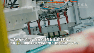 从行业分类看,11个一级行业中,交通运输仓储和邮政业、信息传输软件和信息技术服务业、批发和零售业、住宿和餐饮业等8个行业用电量同比均实现增长,增长面达72.73%。用电量增长幅度最大的是信息传输软件和信息技术服务行业,同比增长17.7%,其中互联网数据服务业用电量增幅更是高达422%。