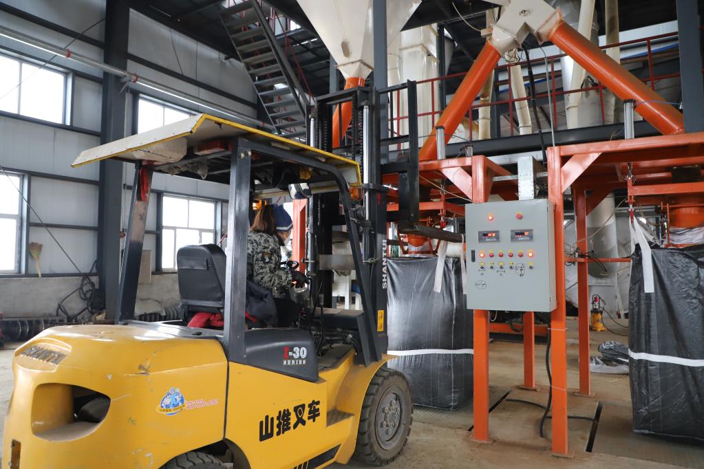 哈尔滨春宇生物科技有限公司永丰收购加工厂内,工作人员正在操作叉车。新华社记者戴锦镕 摄
