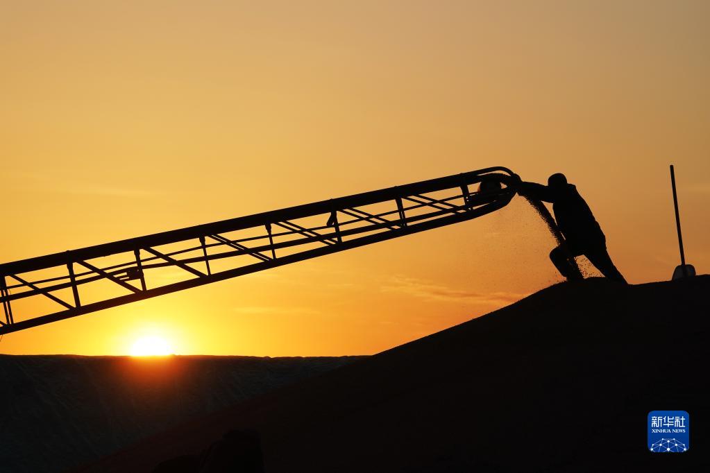10月20日,在北大荒集团北安分公司赵光农场有限公司,工作人员在一处晒场的玉米堆上忙碌。新华社记者 王建威 摄