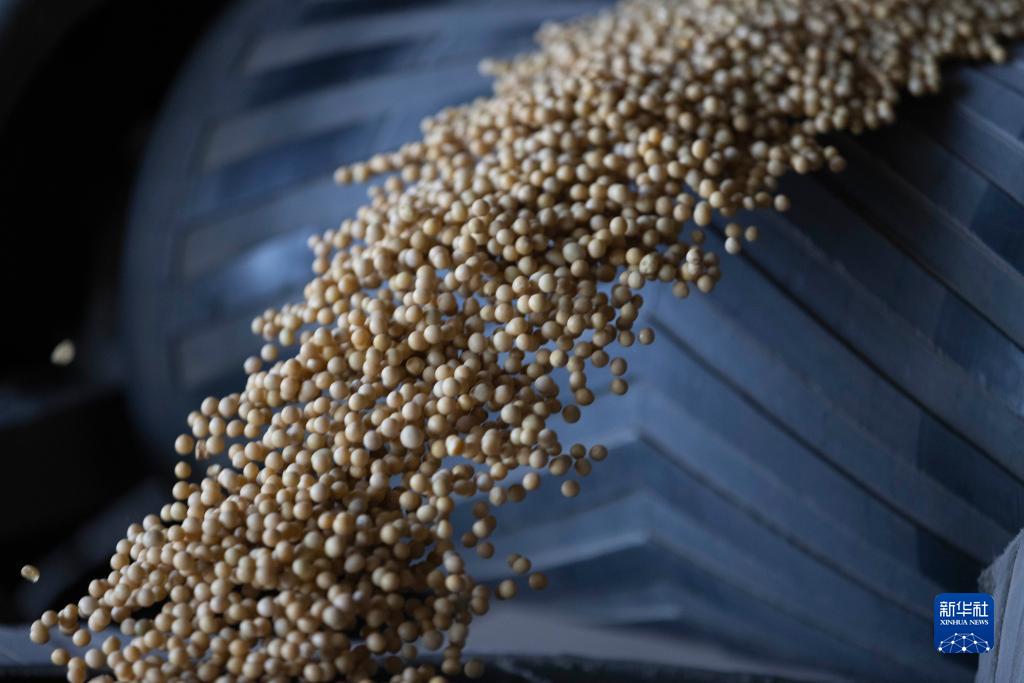 这是10月25日拍摄的黑龙江省绥化市益盛粮食购销有限公司经过筛选的大豆。新华社记者 张涛 摄