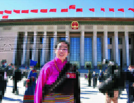 ▲次仁拉姆在北京参加中国共产党第二十次全国代表大会(10月22日摄)。受访者供图