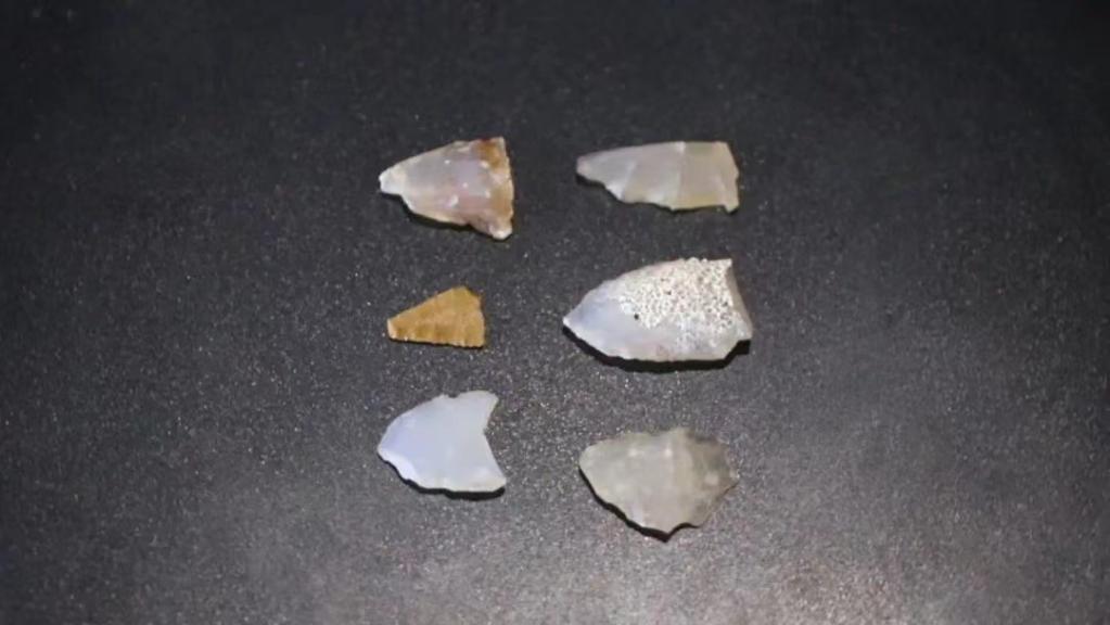 随后,考古人员对此处进行调查发现,该遗址地表上有大量的砍砸器、石磨板、石刀等石器,有的石器形状比较完整,还有一些贝壳类和陶器的碎片。专家初步确认,该遗址属于仰韶文化庙底沟类型的新石器时代遗迹。