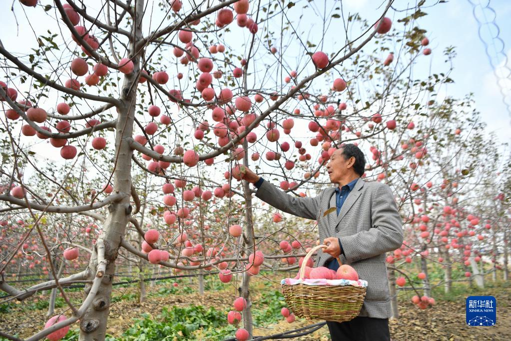 握住果实、轻轻一转,66岁的村民赵永东摘下一颗苹果。“家里20亩果园,去年赚了12万元。今年苹果品相更佳、行情更好,收入不会差。”说起种苹果,平时言语不多的他头头是道:“除了下苦功,还得会管理、懂技术。”